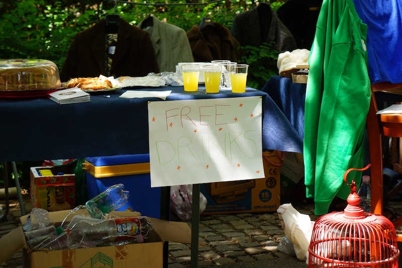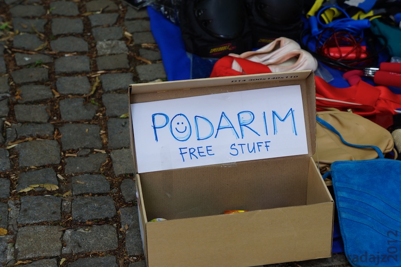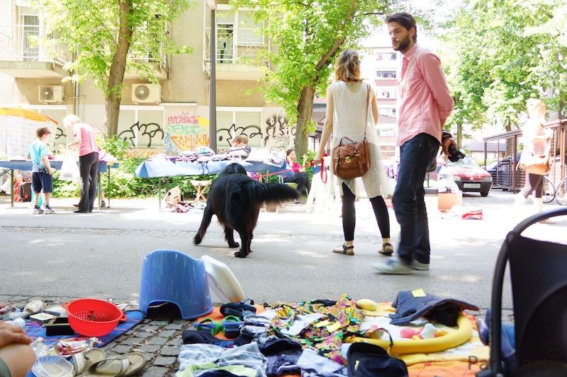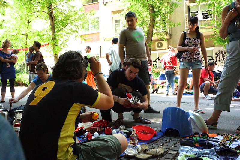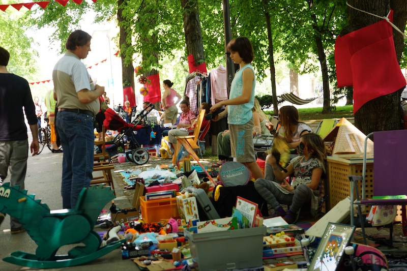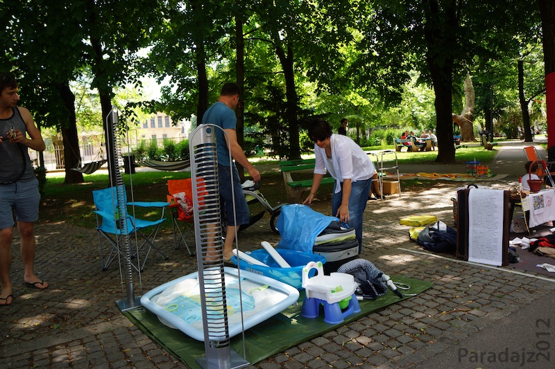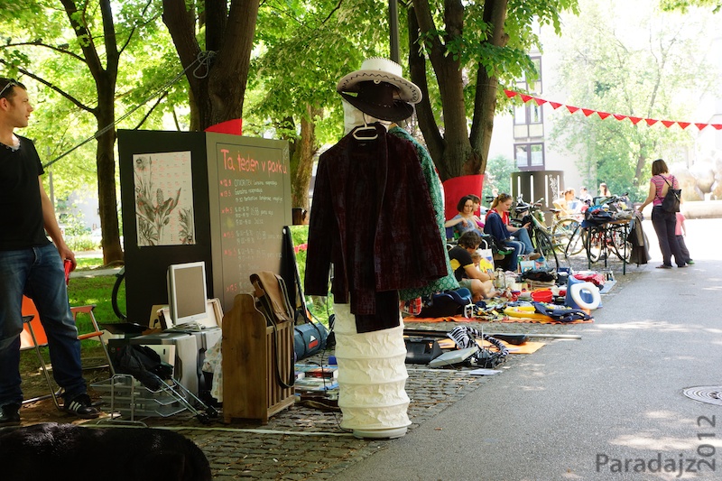 Garažna razprodaja z najbolšo kramo v parku Tabor v Ljubljani. Kupit se da vse živo, zmaj, star radio, kozarci, piškoti, ogledalo, oblačila, otroške igrače… ni da ni. Prodajlci so pripravljeni, imajo kramo, ki jim je lažala doma, poskrbeli so zase z prigrizki, pijačo, stoli, čakajo samo še kupce