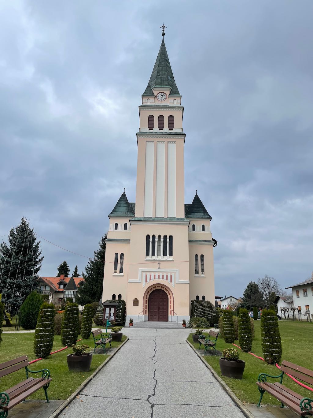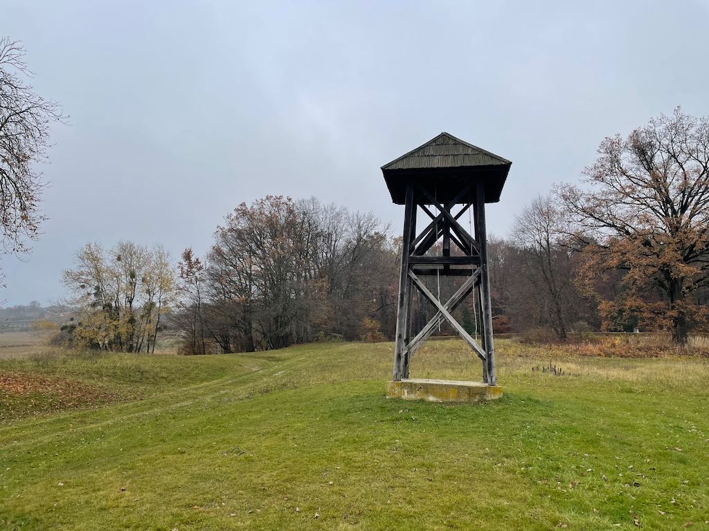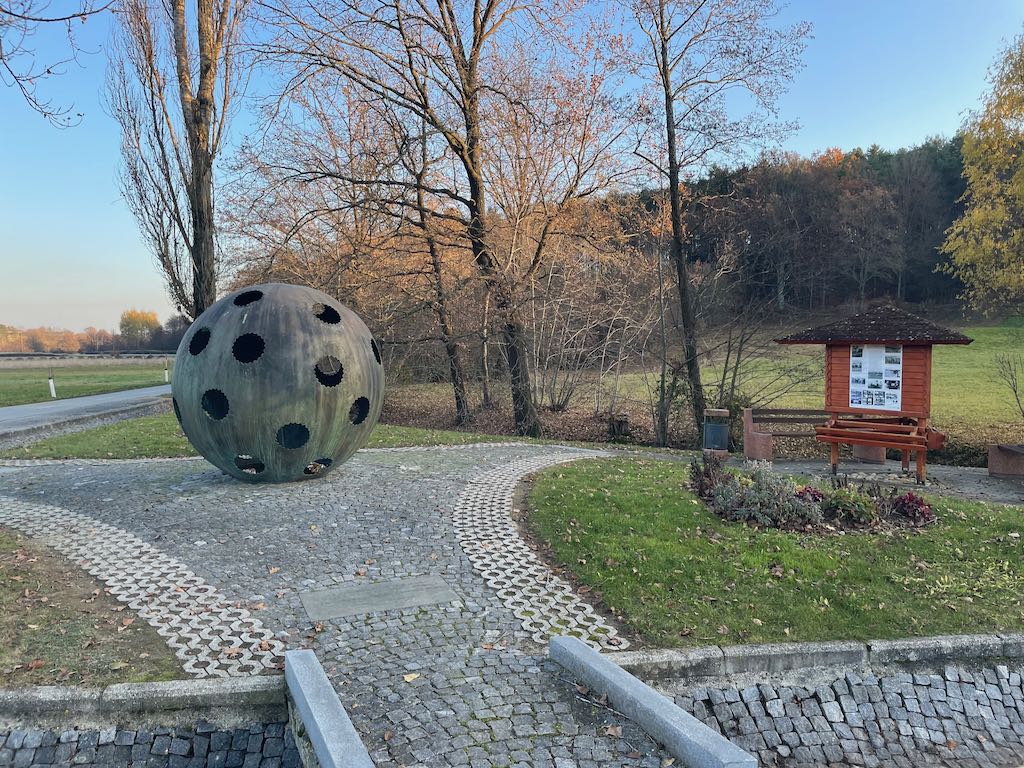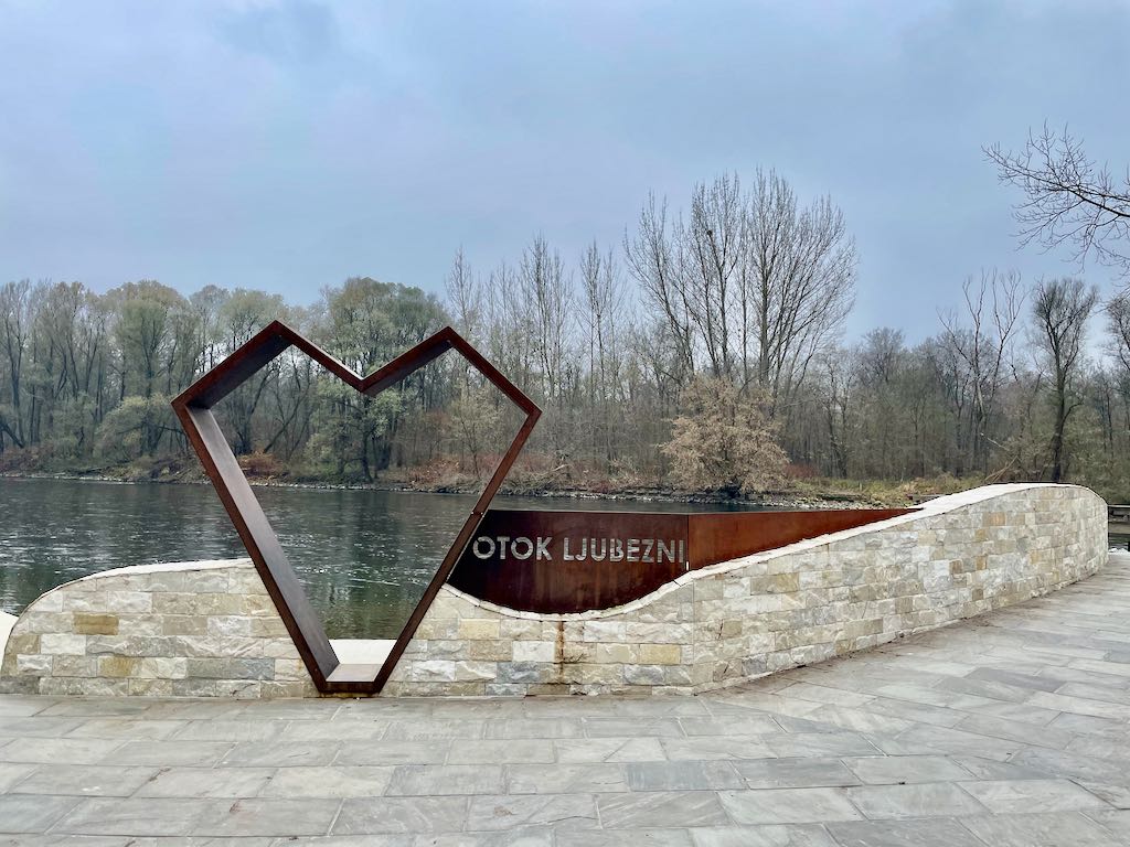 Pred muzejem so prozorne potiskane zavese, ki lepo plapolajo v vetru.