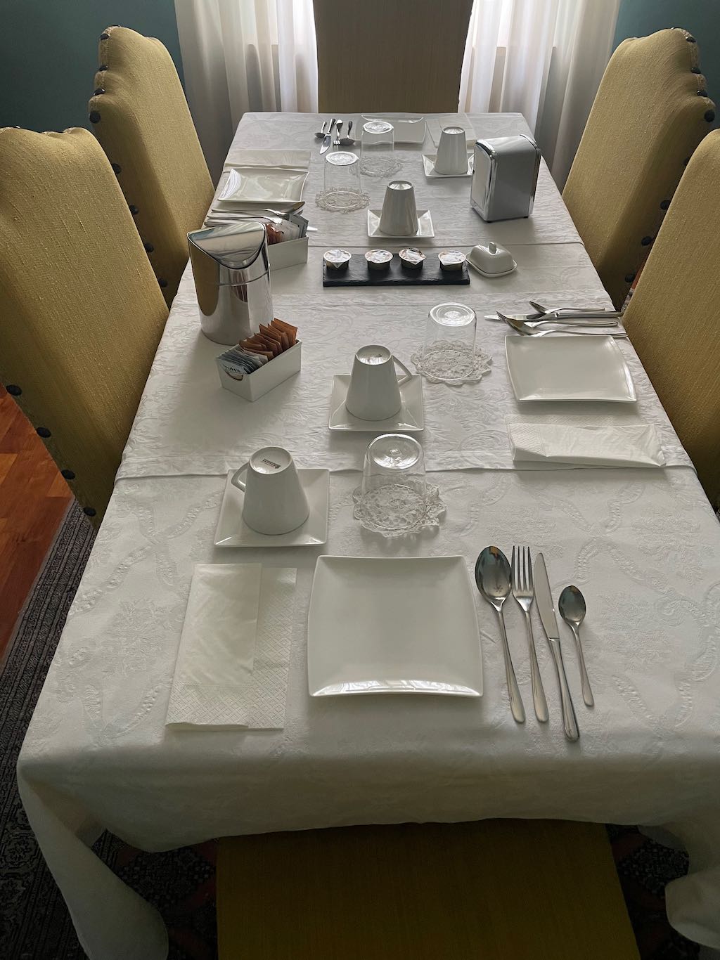 Jutro v nastanitvi je prineslo novo presenečenje, zajtrk v sobi. Staro stanovanje, katereo je bilo predelano v več sob za turiste, sploh nima jedilnice, so raje pridobili še eno sobo, zato je bil zajtrk postrežen, kar v sobo.