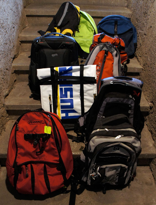 Malih nahrbtnikov imam celo goro, no 9 sem jih našel na hitro, zihr se pa še kje kakšen valja. Enega imam samo za prenašanje mojega MacBook Pro -ja, seveda ga vseeno še zavijem v Crumplerjevo zaščitno torbo, za vsak slučaj.