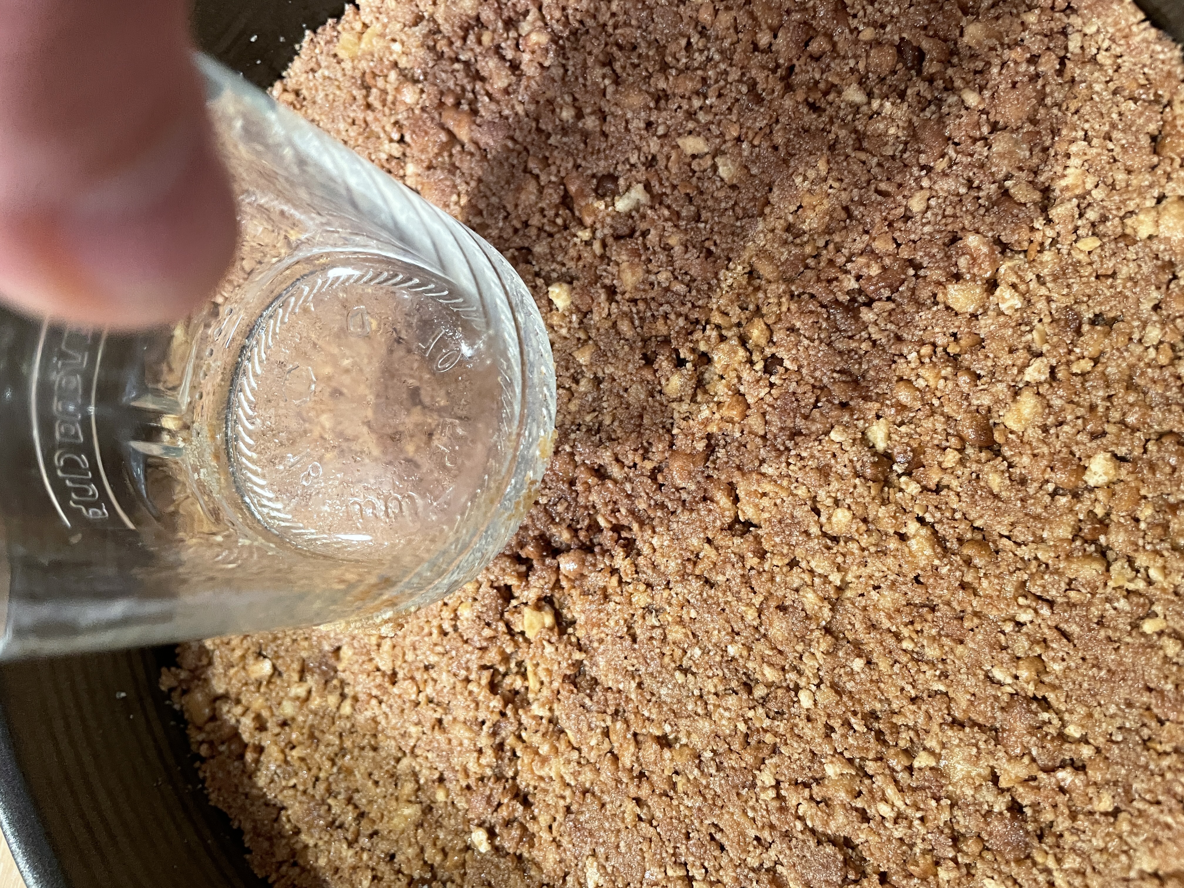 Zmes zdrobljenih piškotov in masla, damo v pekač, potlačimo s primernim kuharskim orodjem, če ni je tudi kozarec za mojito dober. Vse skupaj gre v hladilnik za nakaj časa.