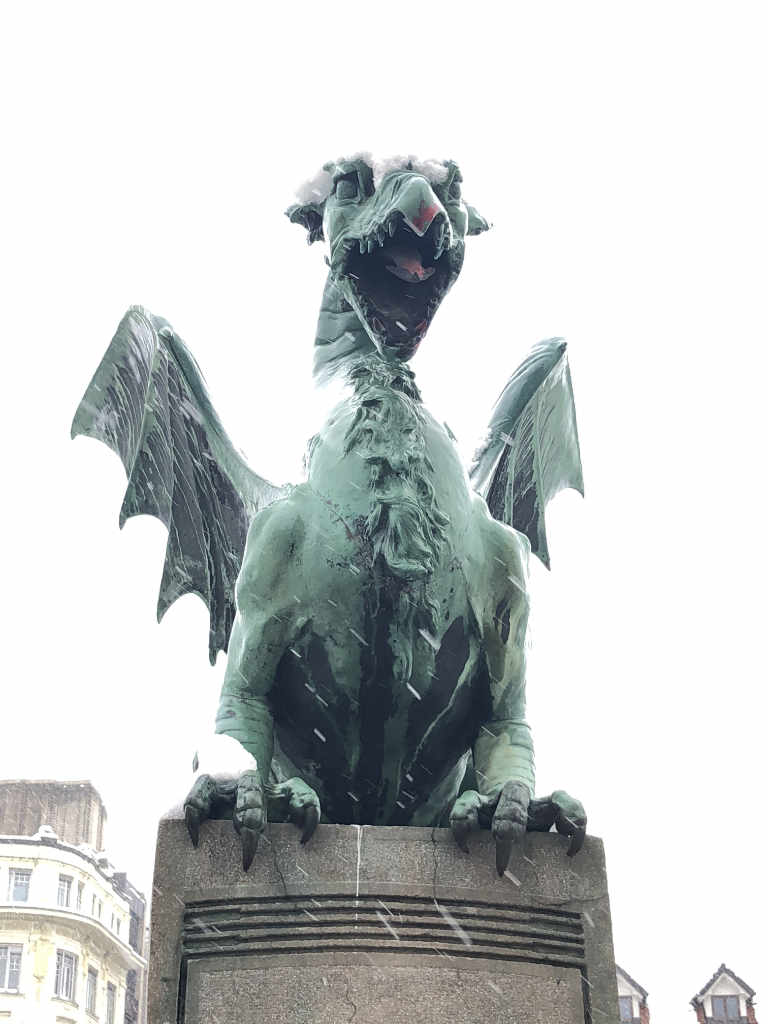 Zmaji so zim in snega že vajeni in niti z glavo ne mignejo, da bi jim padel dol. -