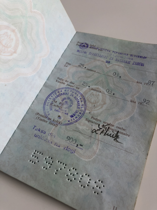 S seboj si prinesel svojo sliko in to v barvah, gospa je vzela iz kupa nov prazen potni list, ga vstavila v pisalni stroj, natipkala podatke, z dvema netoma pritrdila sliko, jo zaščitila z žigom in globokim pečatom. Čez 3 minute si se lahko vsedel v avto in odpeljal v Trst po nove kavbojke.
