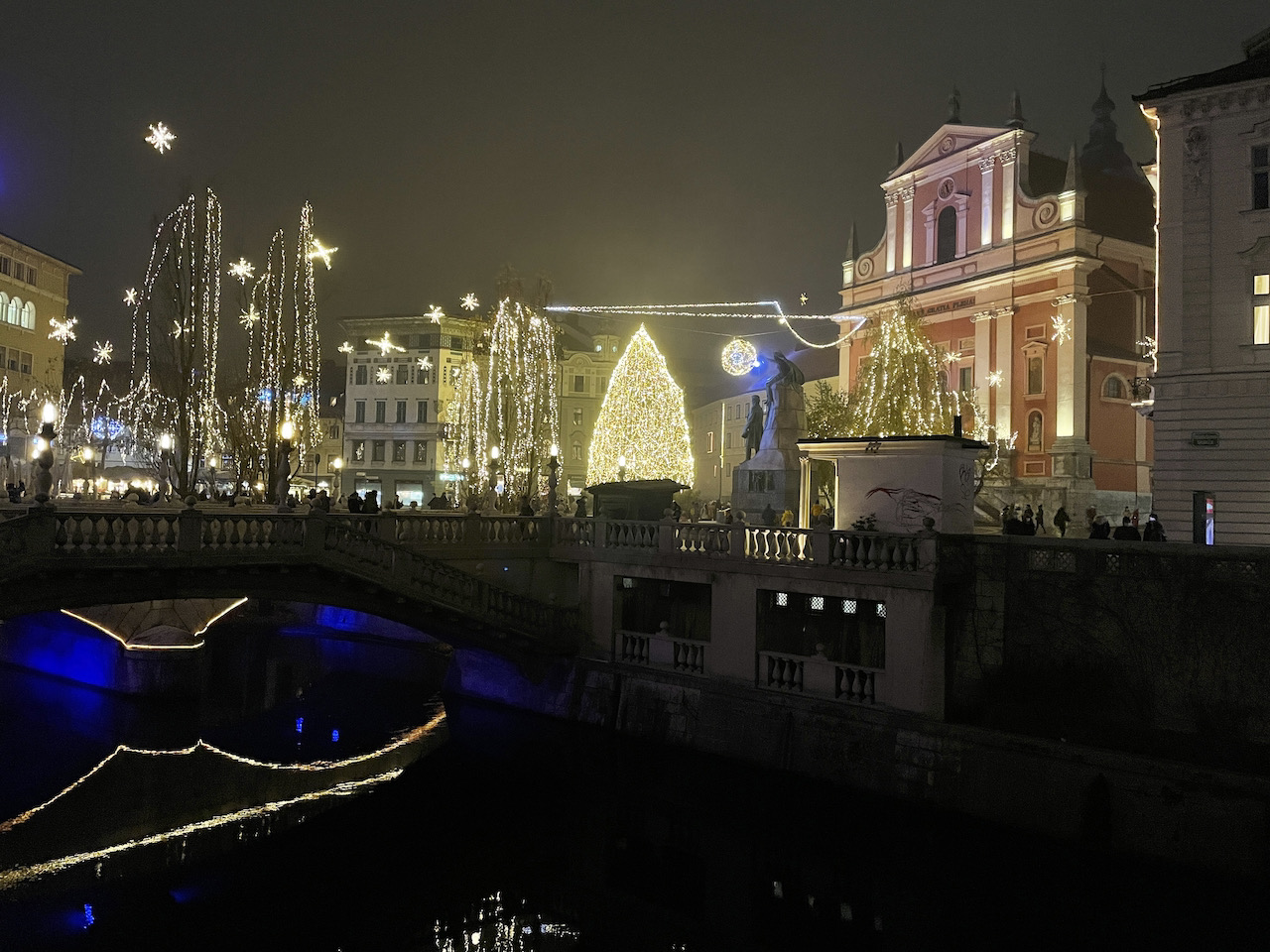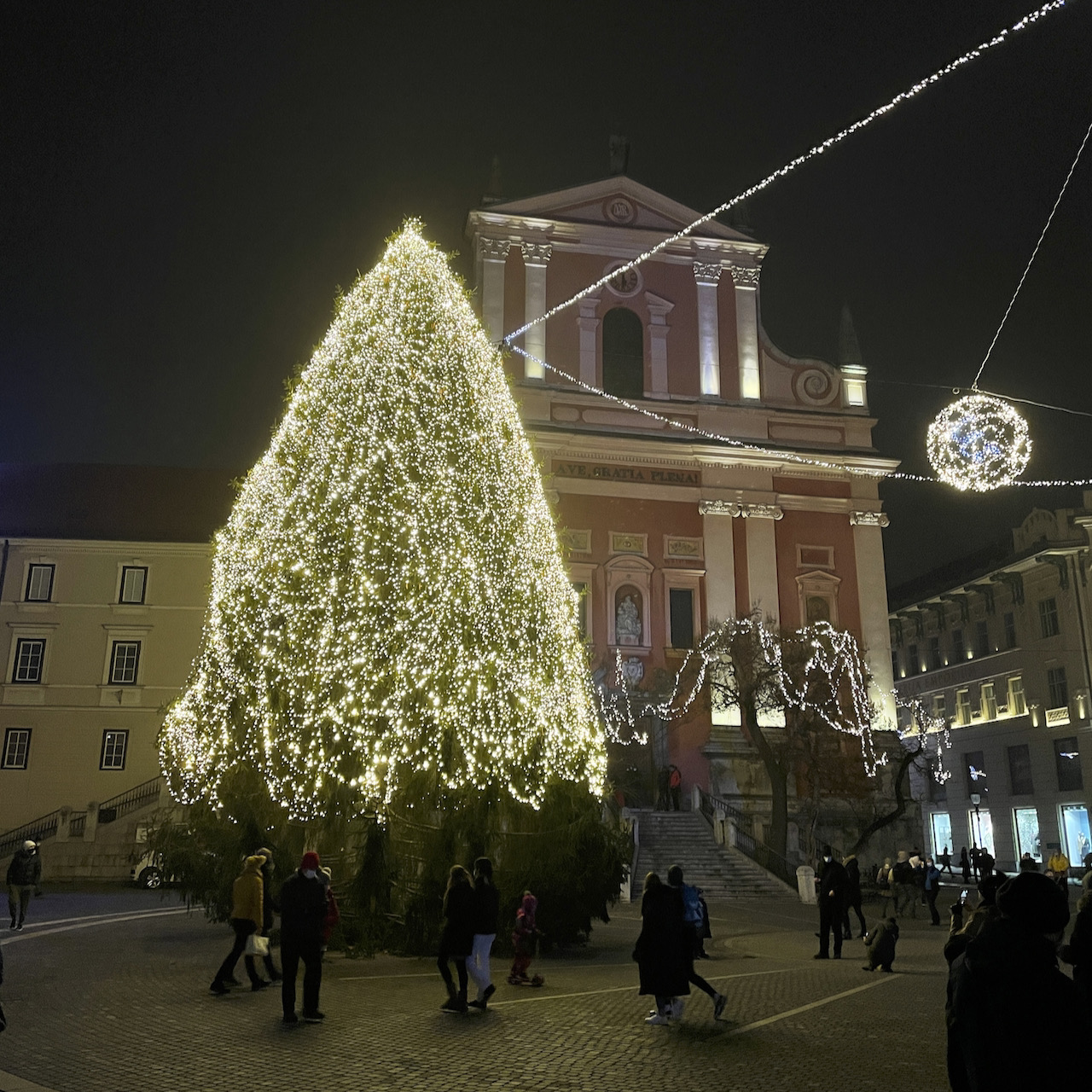 V Ljubljani ni štantov s kramo, prodajalcev balonov, ni Jezerškovega šmorna, ni klobas, čevapov, glasbenih odrov… vse skupaj je še bolj žalostno. Ni velike poniudbe kuhanega vina, vse tiste od slabega do dobrega. Letos si vesel da ga vsaj ponekod prodajajo za sabo, a je čakalna vrsta kar velika, že sedaj, kaj šele bo. Če gospod Jelko ne bo odprl vseh lokalov bo pod jelko precej žalostno in malo ljudi.